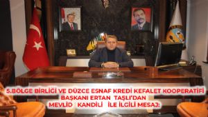 İslam dünyasının birliğini, beraberliğini, dayanışmasını güçlendirmesi dileğiyle; Milletimizin,Esnaf Sanatkarlarımızın ve İslam âleminin “Mevlid Kandili’ni” tebrik ediyor, bu mübarek gecede edilecek duaların, yapılacak ibadetlerin kabul olmasını Cenab-ı Hak’tan niyaz ediyorum.’’ Dedi.