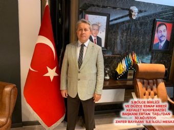 | 5.BÖLGE BİRLİĞİ VE DÜZCE ESNAF KREDİ KEFALET KOOPERATİFİ BAŞKANI ERTAN TAŞLI’DAN 30 AĞUSTOS ZAFER BAYRAMI İLE İLGİLİ MESAJ : |